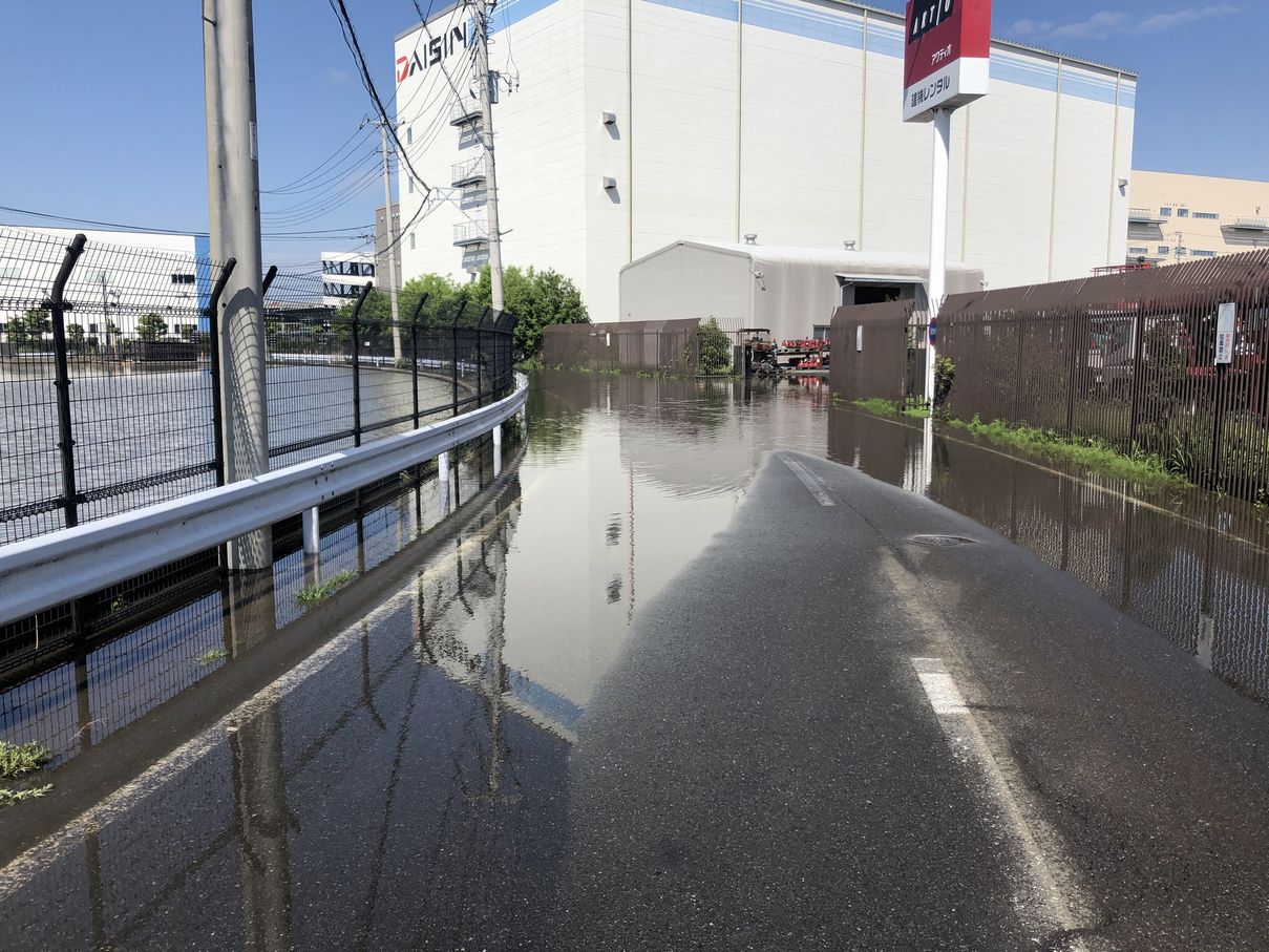 先日(2023/06/02)の大雨で見事に冠水してしまっておりました。周りの道路も見事に冠水。