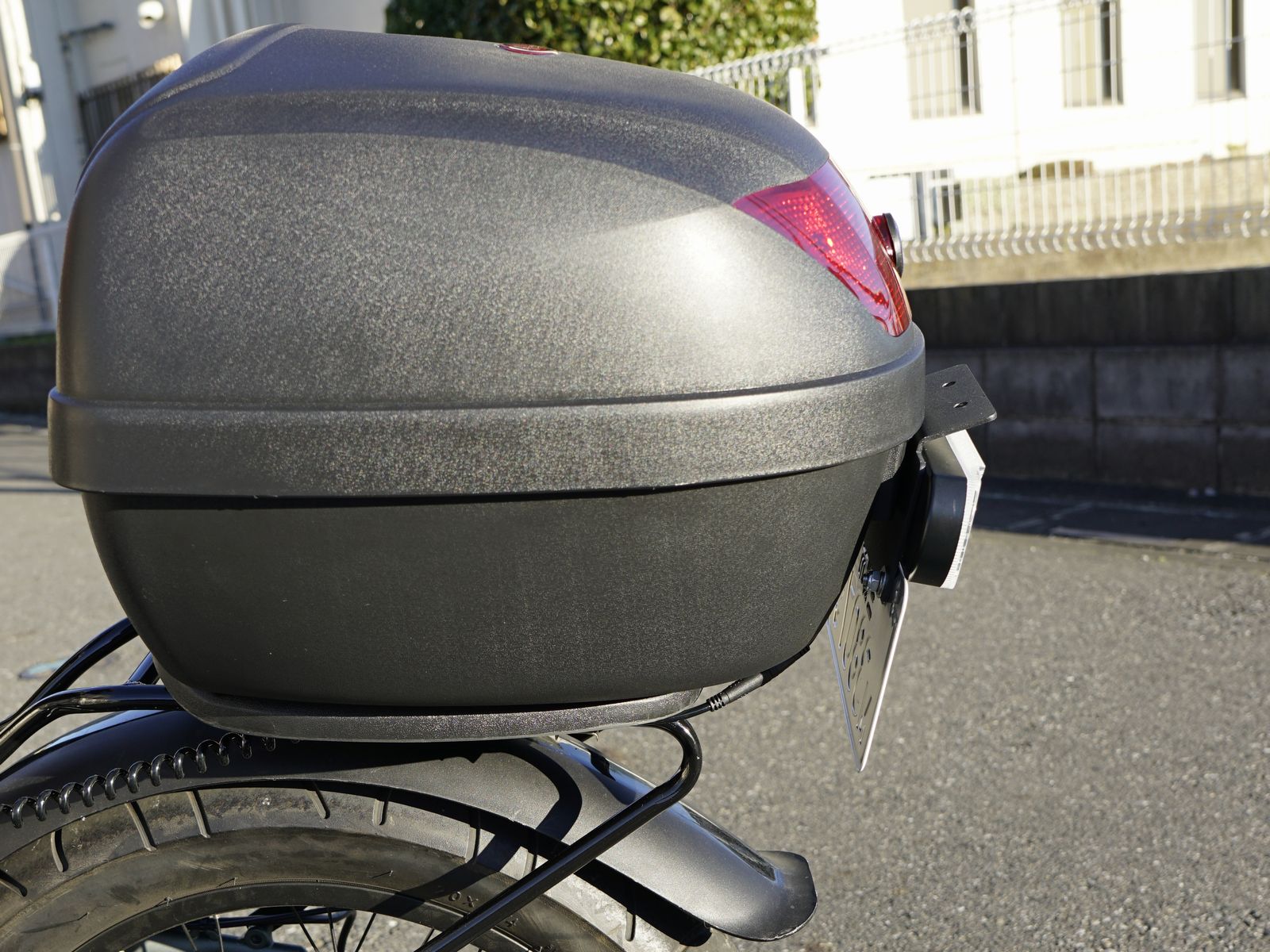 ヘルメット入れ/荷物入れにチョイスしたのはAmazonの脱着タイプの安価なハードケースです。
