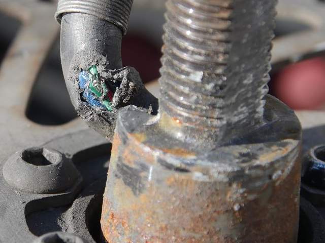 明らかにチギれていました。 そして12V/50Aのヒューズがありましたが、この部品が完全にひしゃげた上に融解してました。事故ダメージ??