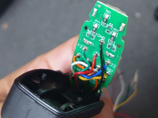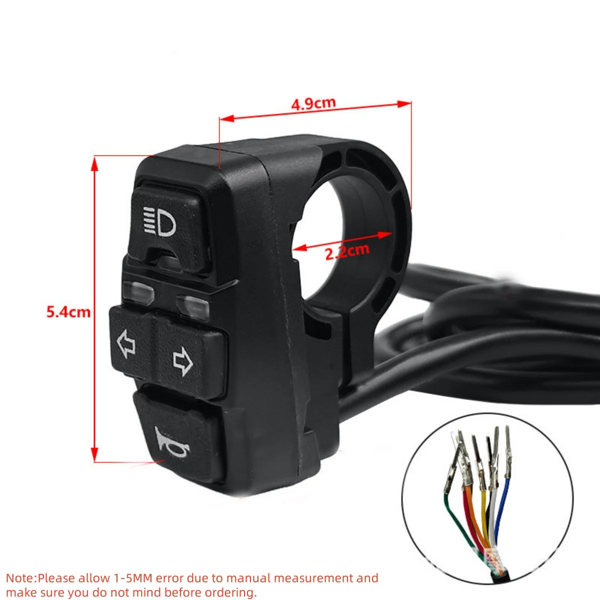・純正左側ウインカー&ホーンスイッチ:青=GND, 赤/黒=ウインカー(右&左)、緑&黄=ホーン