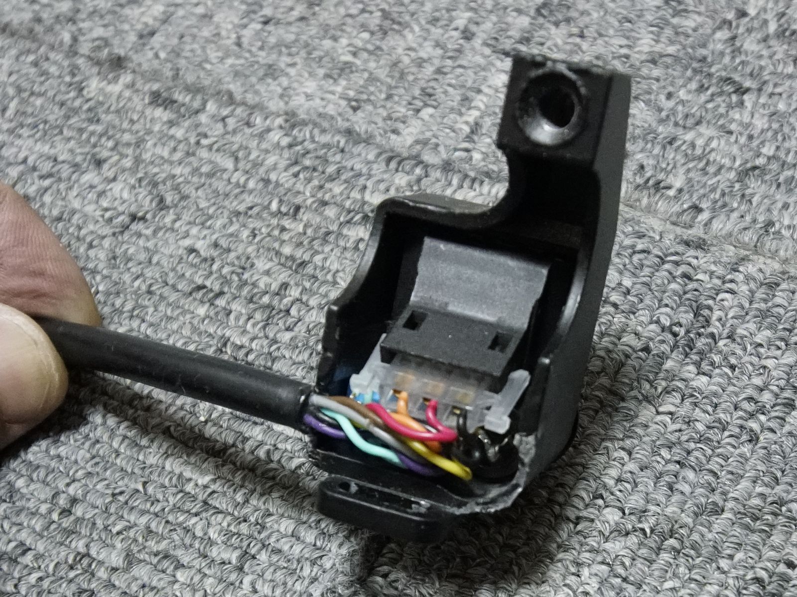 後輪一式を自室に持ち込み、ケーブル断線部分をハンダと余剰線でパッチして接着剤でコーティング。