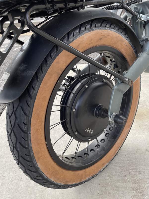 前ホイールはモーターないから比較的交換簡単なんだけど、後ろホイールはモーター重量あって大変。