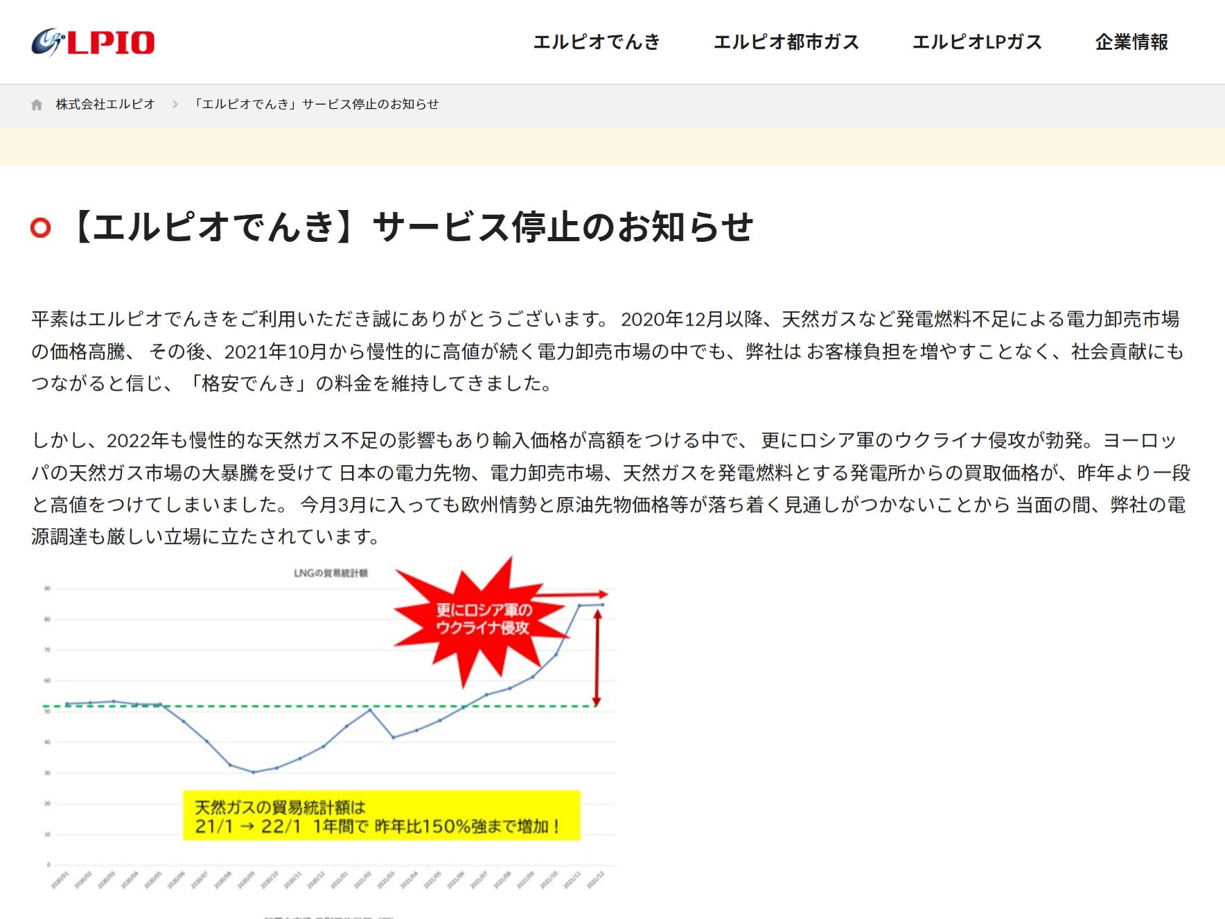 |格安電気「エルピオでんき」がサービス停止、4月末で供給打ち切り 約14万件の世帯に影響参照URL IT-Media ⇒ https://www.itmedia.co.jp/news/articles/2203/28/news095.html