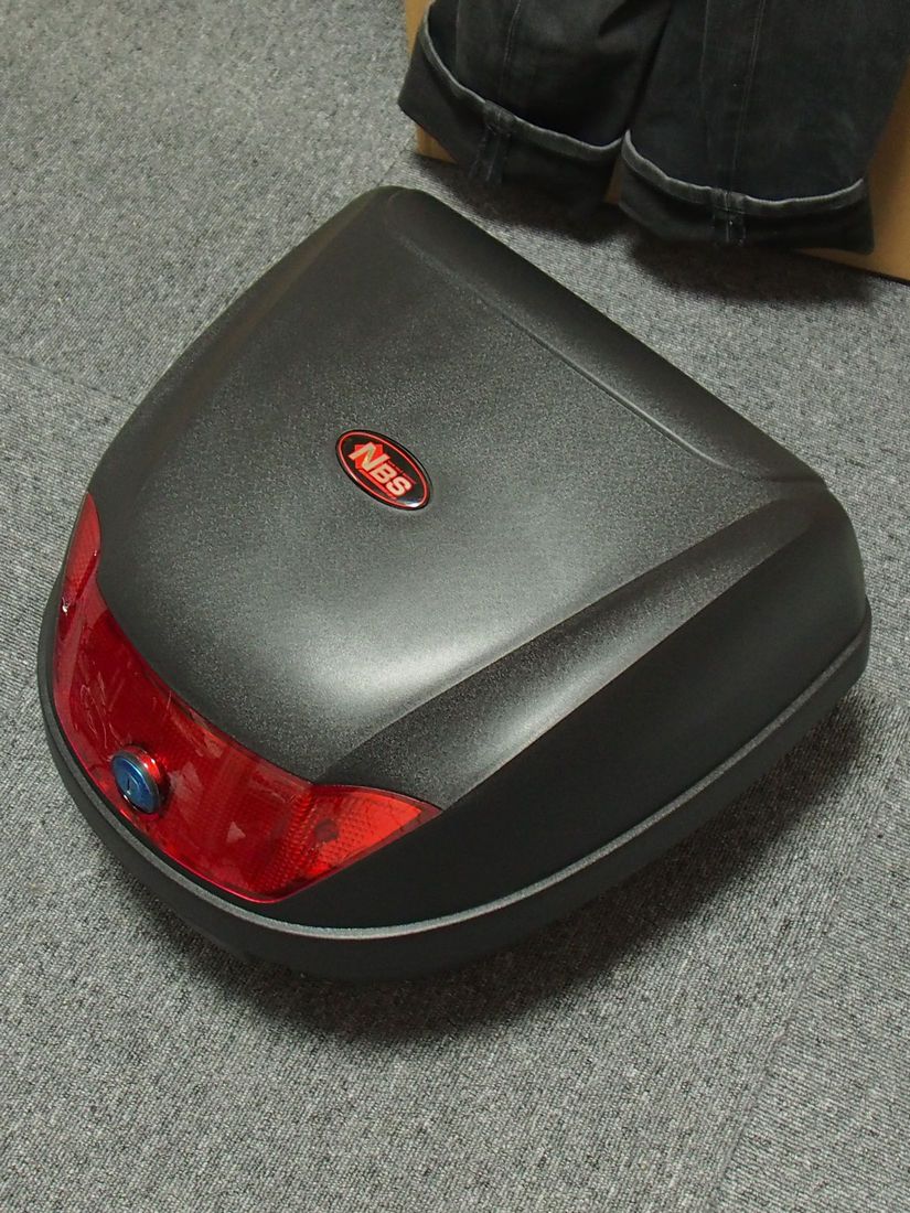 ヘルメット入れ/荷物入れにチョイスしたのはAmazonの脱着タイプの安価なハードケースです。