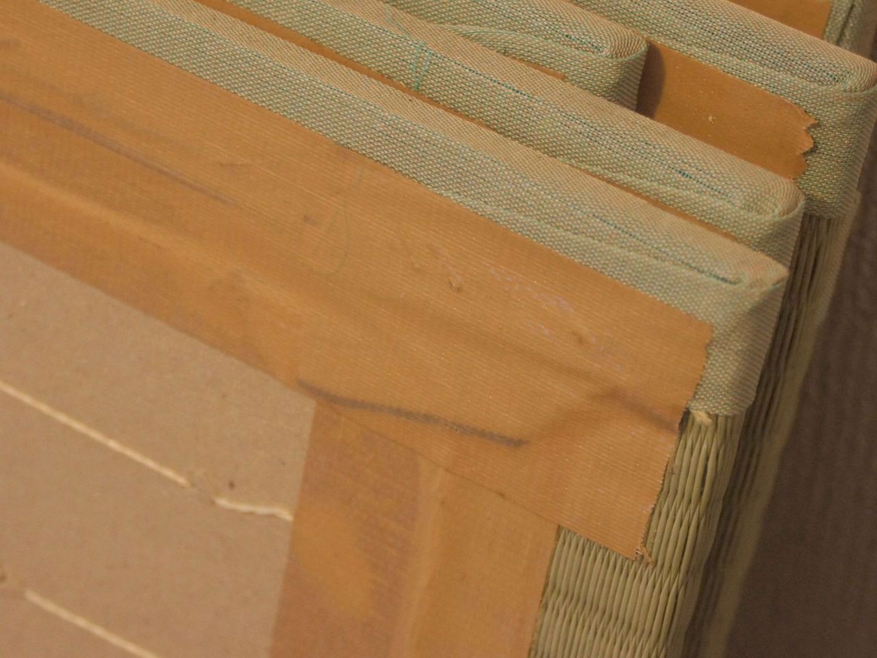 裏返してみてびっくり。ガムテープ! しかも偽畳を剥いで感じたことは、たぶん床下断熱材足りてない。